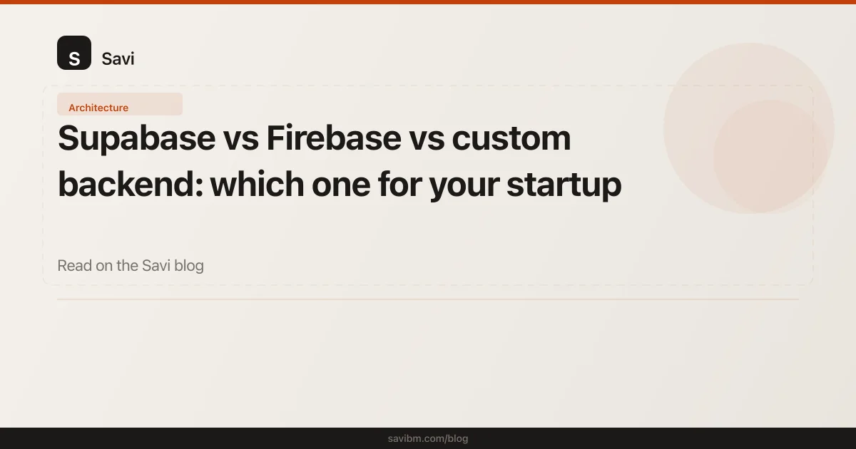 Supabase gives you Postgres for free until 500MB. Firebase scales to millions but locks you into Google's ecosystem. A custom backend costs $3,000-$8,000 upfront but gives you full control.